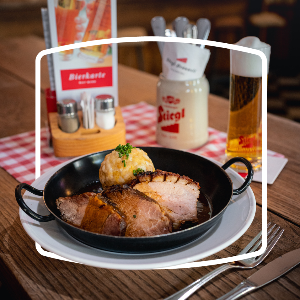 G’schmackiger wird’s nicht: Gewinne ein Stiegl-Bratl für 10 Personen – frisch serviert und begleitet von einem original Stiegl-Goldbräu Holzfass zum Selberzapfen!